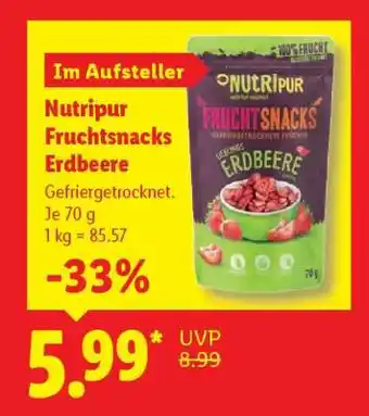 Jetzt im Angebot bei Lidl: Nutripur Fruchtsnacks Erdbeere ✅ Aktion gültig vom 16-02 bis 21-02.