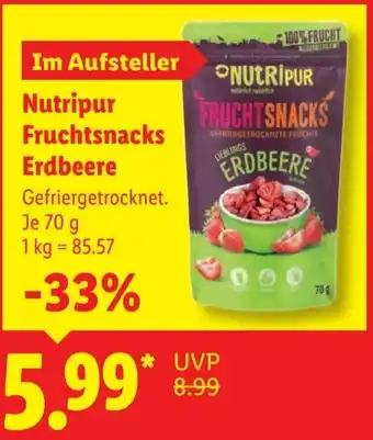 Jetzt im Angebot bei Lidl: Nutripur Fruchtsnacks Erdbeere ✅ Aktion gültig vom 16-02 bis 22-02.