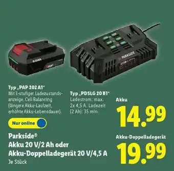 Parkside Akku 20 V/2 Ah oder Akku-Doppelladegerät 20 V/4,5 A Angebote und Online Aktionen direkt aus dem aktuellen Lidl Angebot