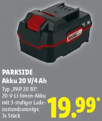 Jetzt im Angebot bei Lidl: PARKSIDE Akku 20 V/4 Ah ✅ Aktion gültig vom 27-04 bis 2-05.