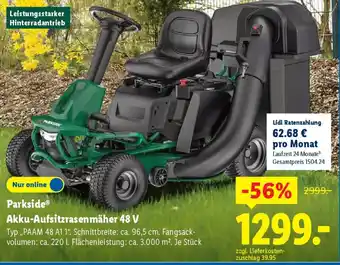 Parkside Akku-Aufsitzrasenmäher 48 V-Angebot bei Lidl