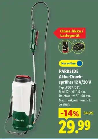 PARKSIDE Akku-Drucksprüher 12 V/20 V Angebote und Aktionen bei Lidl