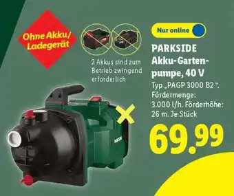 Jetzt im Angebot bei Lidl: PARKSIDE Akku-Gartenpumpe, 40 V ✅ Aktion gültig vom 23-03 bis 28-03.