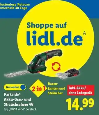 Jetzt im Angebot bei Lidl: Parkside Akku-Gras- und Strauchschere 4V ✅ Aktion gültig vom 16-02 bis 21-02.