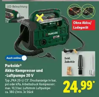Jetzt im Angebot bei Lidl: Parkside Akku-Kompressor und -Luftpumpe 20 V ✅ Aktion gültig vom 26-01 bis 31-01.