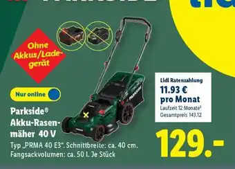 PARKSIDE Akku-Rasenmäher 40 V Angebote und Online Aktionen direkt aus dem aktuellen Lidl Angebot