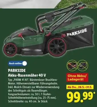 PARKSIDE Akku-Rasenmäher 40 V Typ,,PARM 41 A1"-Angebot bei Lidl