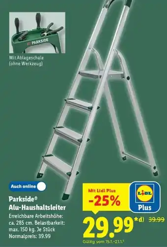 Jetzt im Angebot bei Lidl: Parkside Alu-Haushaltsleiter ✅ Aktion gültig vom 12-01 bis 17-01.