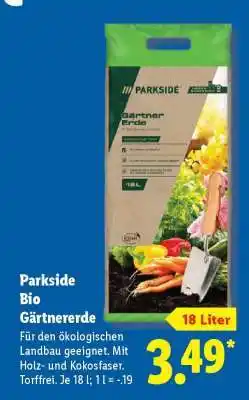 Jetzt im Angebot bei Lidl: Parkside Bio Gärtnererde ✅ Aktion gültig vom 16-02 bis 21-02.