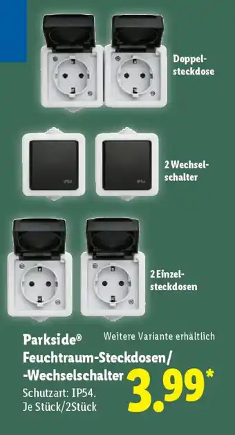 Jetzt im Angebot bei Lidl: Parkside Feuchtraum-Steckdosen/ -Wechselschalter ✅ Aktion gültig vom 2-02 bis 7-02.