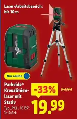 PARKSIDE Kreuzlinienlaser mit Stativ ist jetzt im Angebot bei Lidl, gültig vom 12-01-2026 bis 17-01-2026. Besuchen Sie die Website von Lidl oder kaufen Sie PARKSIDE Kreuzlinienlaser mit Stativ direkt im Geschäft. Auf Prospektangebote.de finden Sie immer die besten aktuellen Aktionen. Vergleichen Sie PARKSIDE Kreuzlinienlaser mit Stativ mit anderen Angeboten und prüfen Sie, ob sich ein Kauf jetzt lohnt. Behalten Sie kommende Aktionen im Blick, denn manche Produkte sind nur nächste Woche oder nur vor Ort verfügbar.Häufig gestellte Fragen über PARKSIDE Kreuzlinienlaser mit Stativ