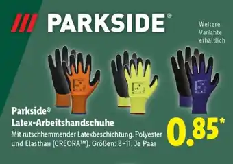 Jetzt im Angebot bei Lidl: Parkside Latex-Arbeitshandschuhe ✅ Aktion gültig vom 23-02 bis 28-02.