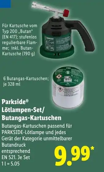 Jetzt im Angebot bei Lidl: Parkside Lötlampen-Set/ Butangas-Kartuschen ✅ Aktion gültig vom 16-02 bis 22-02.