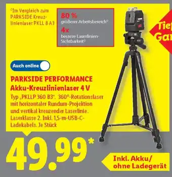 PARKSIDE PERFORMANCE Akku-Kreuzlinienlaser 4 V Typ „PKLLP 360 B3".-Angebot bei Lidl