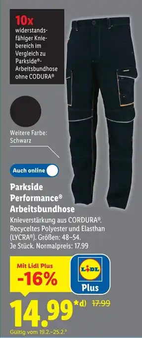Jetzt im Angebot bei Lidl: Parkside Performance Arbeitsbundhose ✅ Aktion gültig vom 16-02 bis 22-02.