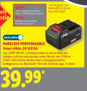 Jetzt im Angebot bei Lidl: PARKSIDE PERFORMANCE Smart-Akku 20 V/8 Ah ✅ Aktion gültig vom 27-04 bis 2-05.