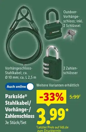 Parkside stahlkabel/vorhänge-/zahlenschloss-Rabatt bei Lidl