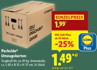 Jetzt im Angebot bei Lidl: Parkside Umzugskarton ✅ Aktion gültig vom 29-12 bis 3-01.