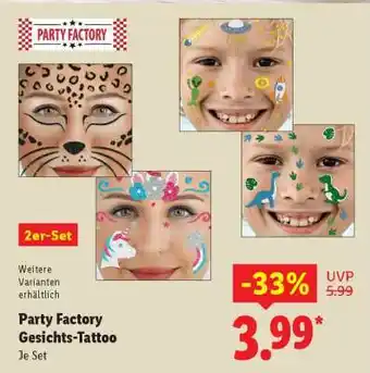 Jetzt im Angebot bei Lidl: Party Factory Gesichts-Tattoo ✅ Aktion gültig vom 26-01 bis 31-01.