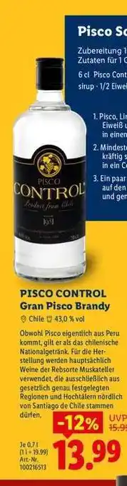PISCO CONTROL Gran Pisco Brandy Angebote und Online Aktionen direkt aus dem aktuellen Lidl Angebot