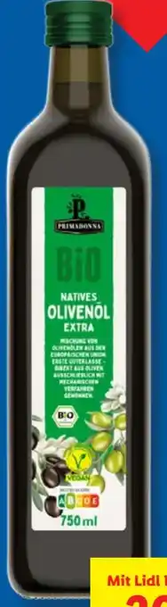 Jetzt im Angebot bei Lidl: Primadonna Öl Natives Bio-Olivenöl Extra Vegan ✅ Aktion gültig vom 2-03 bis 8-03.