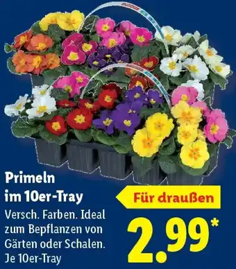 Den Preis von dem Primeln im 10er-Tray finden Sie auch oben auf der Website, zusammen mit dem Datum, ab wann das Angebot erhältlich ist. Sie können die Preise auch im aktuellen Lidl Prospekt nachhalten oder auf der Lidl Website nachschauen. Durch die Angebote können Sie sicher sein, die Lidl Produkte zum absoluten Bestpreis zu ergattern.