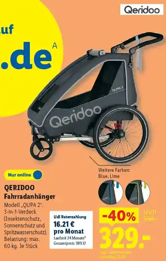QERIDOO Fahrradanhänger Angebote und Online Aktionen direkt aus dem aktuellen Lidl Angebot