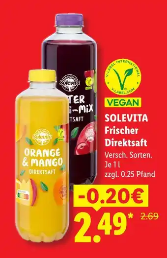 Jetzt im Angebot bei Lidl: Solevita frischer direktsaft ✅ Aktion gültig vom 29-03 bis 31-12.