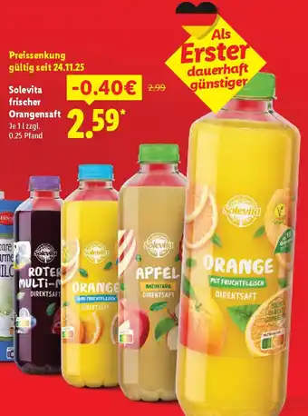 Jetzt im Angebot bei Lidl: Solevita frischer Orangensaft ✅ Aktion gültig vom 11-01 bis 17-01.