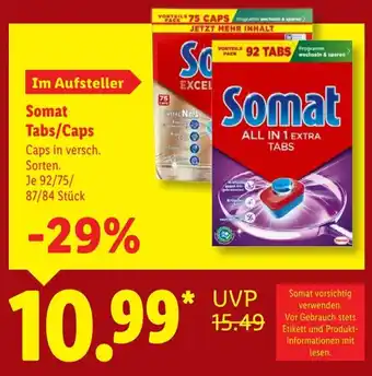 Werfen Sie einen Blick auf die günstigsten Produkte zwischen all den Angeboten! Wenn Sie gerne wissen möchten, ob Lidl die höchsten Rabatte für Somat Tabs/Caps anbietet, vergleichen Sie die Angebote ganz einfach auf der Startseite mit den anderen Geschäften.