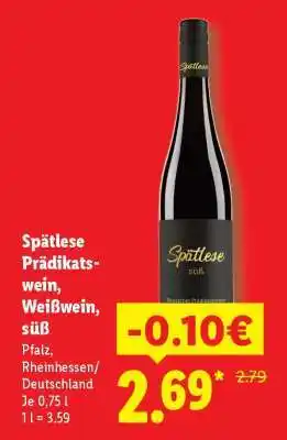 Jetzt im Angebot bei Lidl: Spätlese Prädikatswein, Weißwein, süß ✅ Aktion gültig vom 21-02 bis 1-03.
