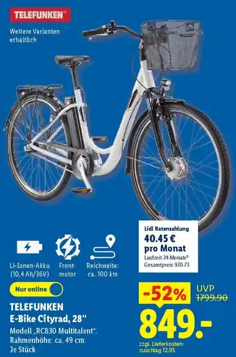 Jetzt im Angebot bei Lidl: TELEFUNKEN E-Bike Cityrad, 28" ✅ Aktion gültig vom 27-04 bis 2-05.