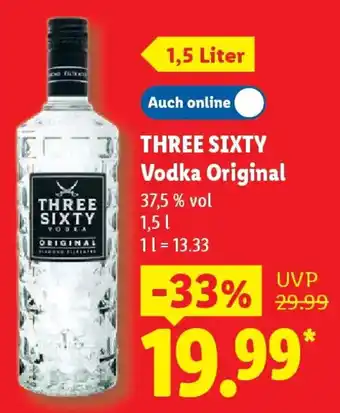Jetzt im Angebot bei Lidl: THREE SIXTY Vodka Original ✅ Aktion gültig vom 27-04 bis 2-05.