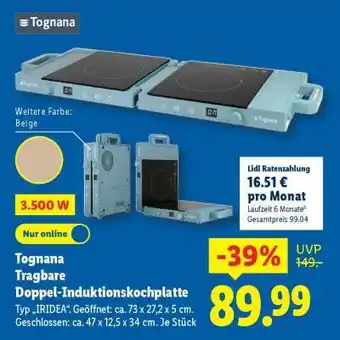 Jetzt im Angebot bei Lidl: Tognana Tragbare Doppel-Induktionskochplatte ✅ Aktion gültig vom 23-03 bis 28-03.