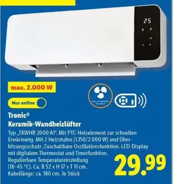 Jetzt im Angebot bei Lidl: Tronic Keramik-Wandheizlüfter ✅ Aktion gültig vom 12-01 bis 17-01.