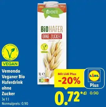 Jetzt im Angebot bei Lidl: Vemondo Veganer Bio Haferdrink ohne Zucker ✅ Aktion gültig vom 2-03 bis 8-03.
