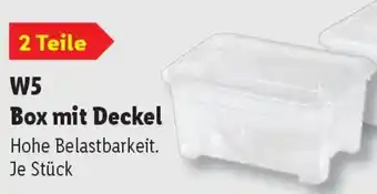 Den Preis von dem W5 Box mit Deckel finden Sie auch oben auf der Website, zusammen mit dem Datum, ab wann das Angebot erhältlich ist. Sie können die Preise auch im aktuellen Lidl Prospekt nachhalten oder auf der Lidl Website nachschauen. Durch die Angebote können Sie sicher sein, die Lidl Produkte zum absoluten Bestpreis zu ergattern.