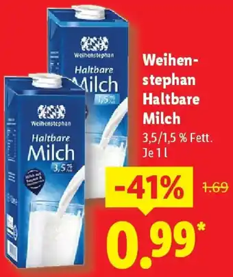 Jetzt im Angebot bei Lidl: Weihenstephan Haltbare Milch ✅ Aktion gültig vom 16-02 bis 22-02.