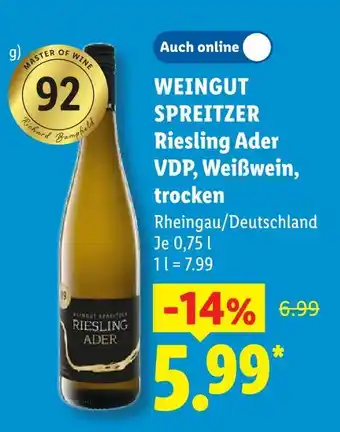 Weingut spreitzer riesling ader vdp, weißwein, trocken-Angebot bei Lidl