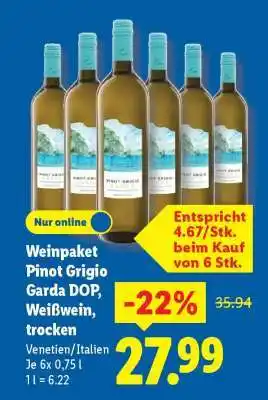Jetzt im Angebot bei Lidl: Weinpaket Pinot Grigio Garda DOP, Weißwein, trocken ✅ Aktion gültig vom 19-01 bis 24-01.