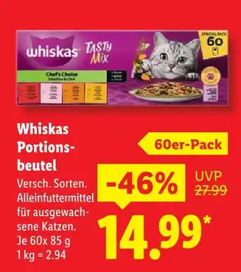 Jetzt im Angebot bei Lidl: Whiskas tasty mix portionsbeutel ✅ Aktion gültig vom 2-02 bis 7-02.