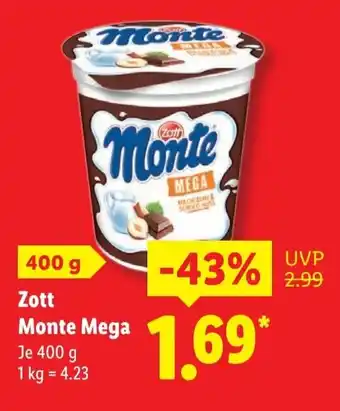 Jetzt im Angebot bei Lidl: Zott Monte Mega ✅ Aktion gültig vom 16-02 bis 22-02.