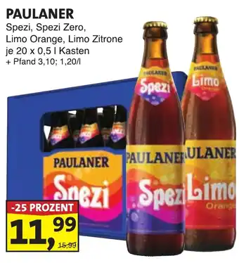 PAULANER Spezi, Spezi Zero, Limo Orange, Limo Zitrone Angebote und Aktionen bei Lösch Depot