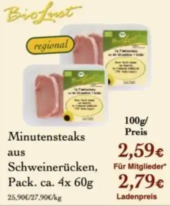 Minutensteaks aus Schweinerücken, Aktion bei LPG Biomarkt