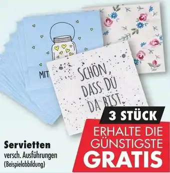 Das Angebot ist in verschiedenen Geschäften erhältlich. Schauen Sie sich alle Produkte an, um das günstigste Servietten zu ergattern. Wenn Sie gerne nachschauen möchten, ob der Artikel woanders noch günstiger ist, werfen Sie einen Blick auf die Kategorie 'Supermärkte'. Möglicherweise sind diese Angebote auch interessant für Sie: Servietten, Servietten & Servietten.