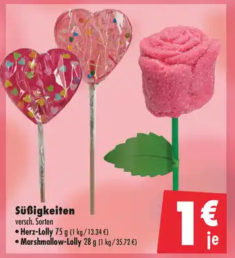 versch. Sorten • Herz-Lolly 75 g (1 kg/13.34 €) • Marshmallow-Lolly 28 g (1 kg/35.72 €)
