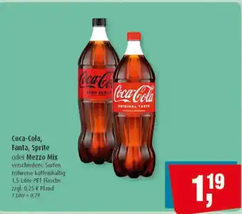 Coca-Cola, Fanta, Sprite oder Mezzo Mix 1.5 l