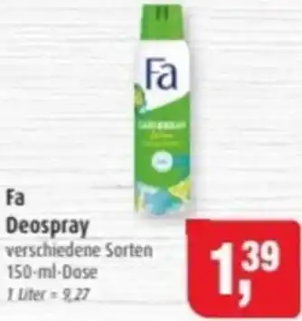 Das Angebot ist in verschiedenen Geschäften erhältlich. Schauen Sie sich alle Produkte an, um das günstigste Fa Deospray zu ergattern. Wenn Sie gerne nachschauen möchten, ob der Artikel woanders noch günstiger ist, werfen Sie einen Blick auf die Kategorie 'Supermärkte'. Möglicherweise sind diese Angebote auch interessant für Sie: Fa Deospray oder Duschgel, Fa Deospray oder Duschgel & Fa Deospray oder Roll-On.