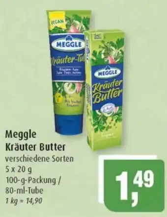 Das Angebot ist in verschiedenen Geschäften erhältlich. Schauen Sie sich alle Produkte an, um das günstigste Meggle Kräuter Butter zu ergattern. Wenn Sie gerne nachschauen möchten, ob der Artikel woanders noch günstiger ist, werfen Sie einen Blick auf die Kategorie 'Supermärkte'. Möglicherweise sind diese Angebote auch interessant für Sie: Kräuter, Kräuter & Kräuter.