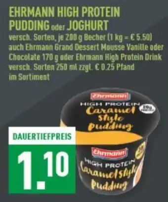 versch. Sorten, je 200 g Becher (1 kg = €5.50) auch Ehrmann Grand Dessert Mousse Vanille oder Chocolate 170 g oder Ehrmann High Protein Drink versch. Sorten 250 ml zzgl. € 0.25 Pfand im Sortiment